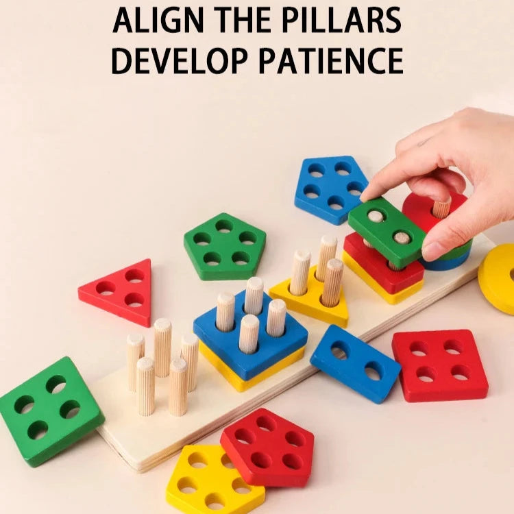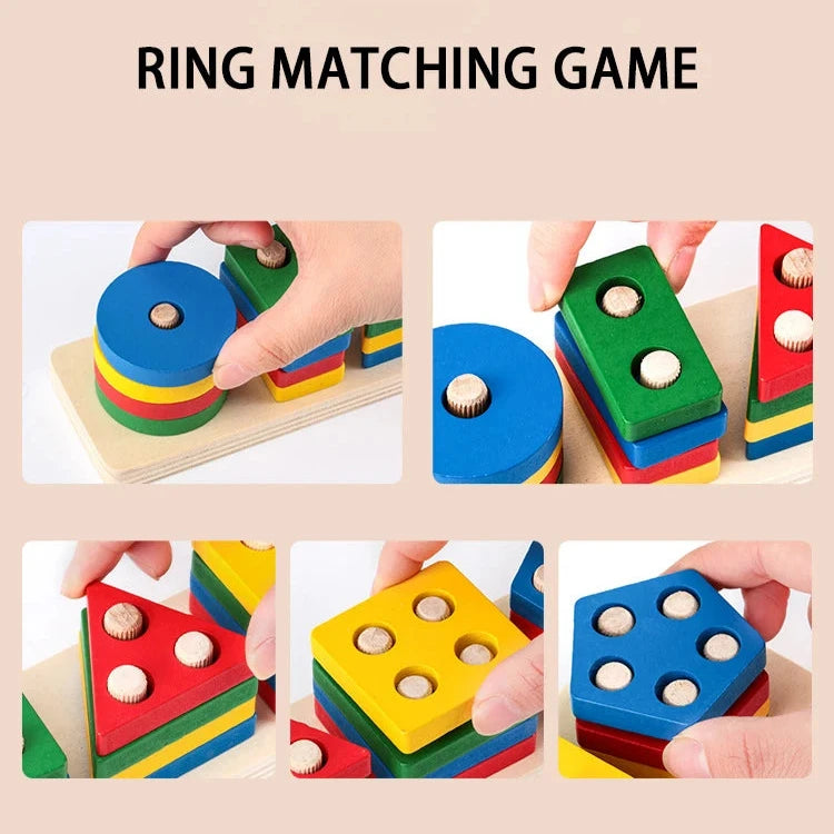 This set includes 4 different shapes and colors, featuring movable and stackable geometric blocks. Children can engage in classification activities, sorting the shapes by color, size, or form. The hands-on experience encourages them to explore and understand the concepts of shapes and colors in a fun, interactive way.