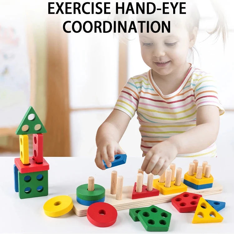 The Sorting Geometric Shape Set is more than just a toy; it's an educational tool that fosters your child's basic skills. As they manipulate the blocks, they enhance their shape and color recognition, dexterity, and hand-eye coordination. These foundational skills are crucial for their cognitive and physical development.