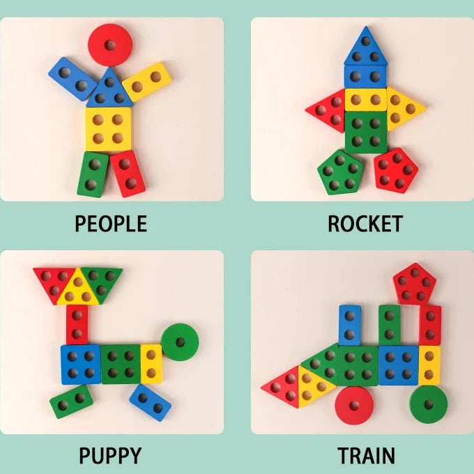 Early exposure to shape and color block toys like this set can spark a child's imagination and creativity. By identifying shapes, colors, and sizes, children develop critical thinking skills that promote both their physical and mental development.