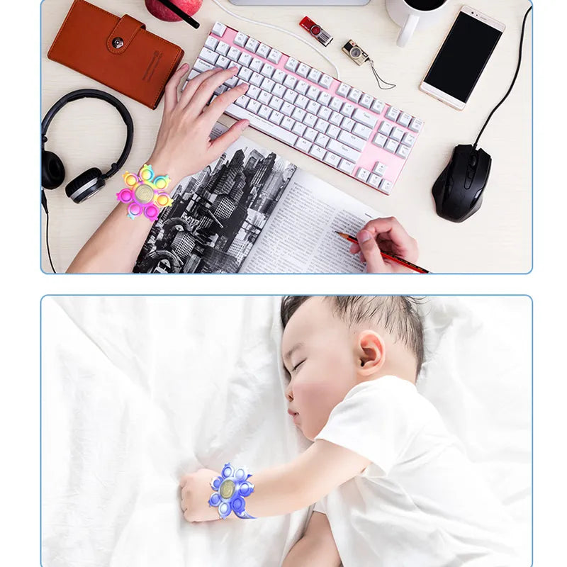 - STRESS RELIEF FIDGET BRACELET: Stop picking skin, biting nails, or pulling hair. When you are anxious, upset, and need something to fidget with, just have a go of the pop watch. These bubble sensory toys will bring you back to the present moment, restoring concentration & peace.