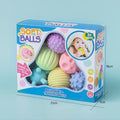 The set includes soft-touch balls in various sizes and shapes, each designed to attract children's curiosity and encourage tactile exploration. The diverse textures and shapes of the balls promote sensory development and grip strength as children knead and handle them.