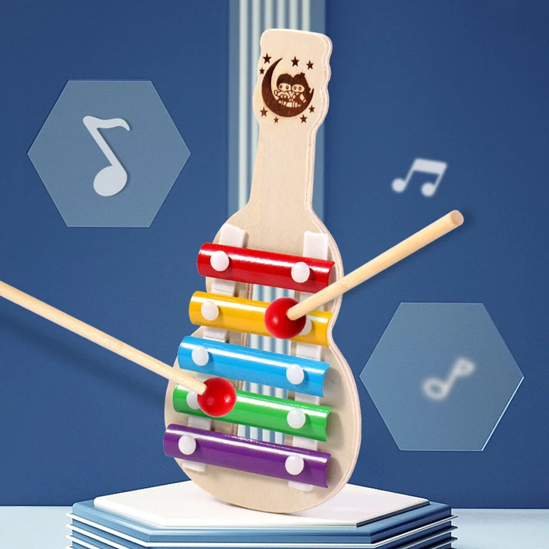 Encourage your child to tap gently on the xylophone's keys and discover the joy of making beautiful music. This instrument is perfect for young beginners to explore rhythm and melody through playful tapping.