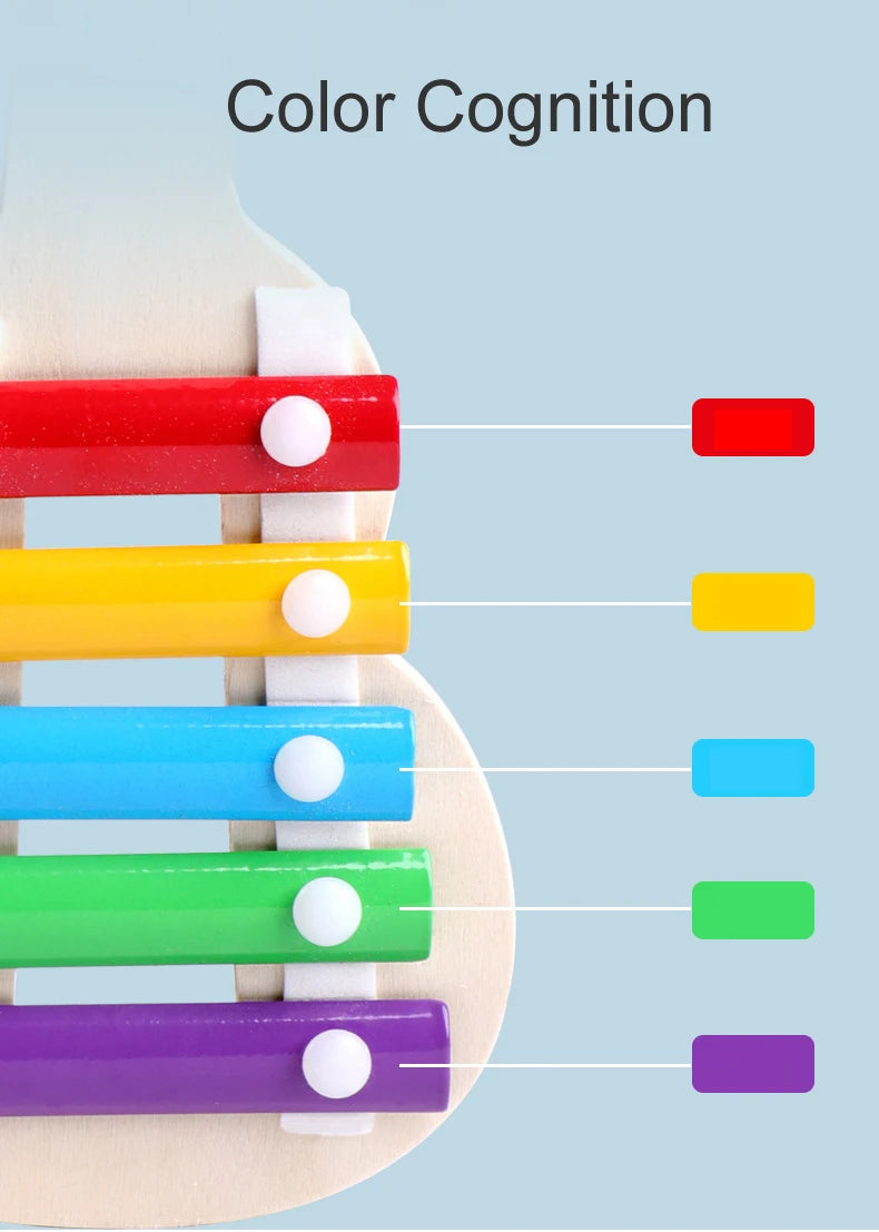 The xylophone's colorful keys are coated with environmentally friendly spray paint, ensuring a safe and vibrant playing experience. The bright colors are not only visually appealing but also help in learning color recognition.